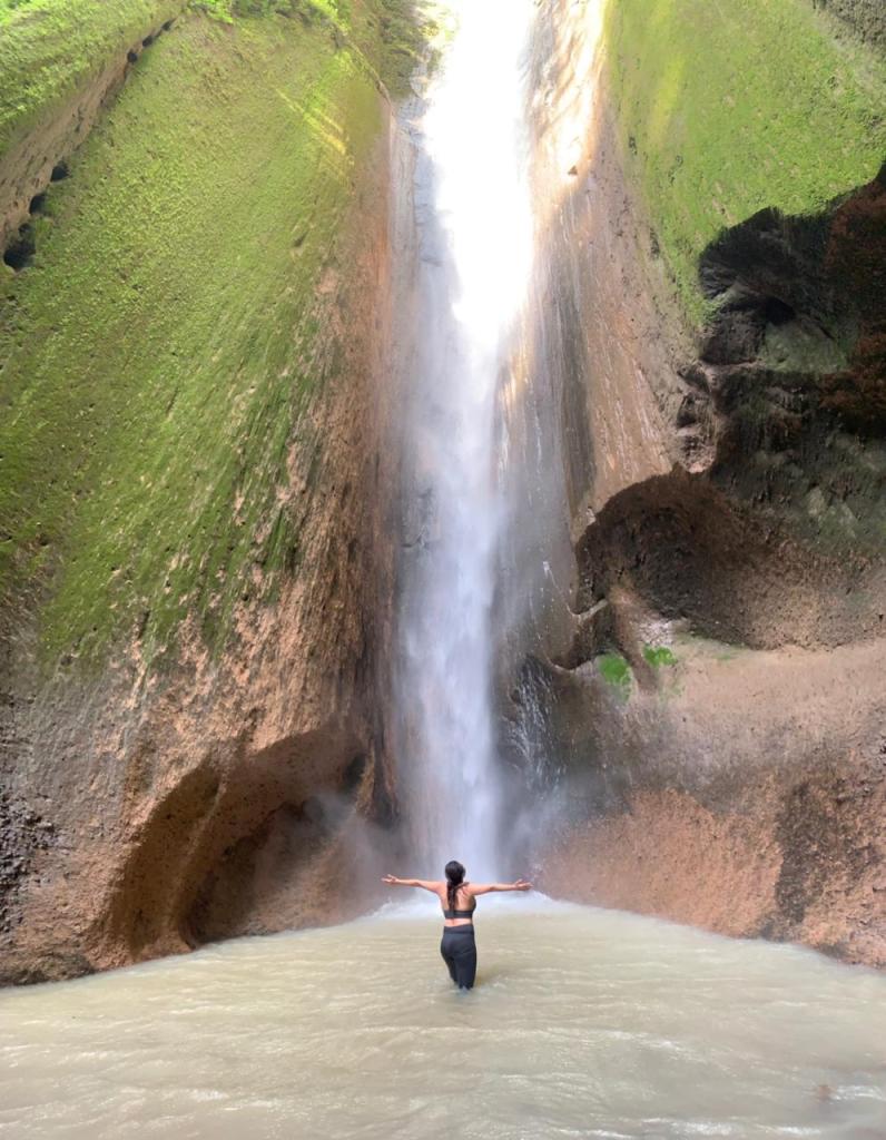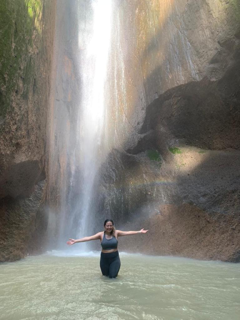 Sin aliento alguno me quedé frente a ella, admirando su belleza y no pude resistir tomar un baño y poder pasar un rato divertido y sentir el agua caer en mis hombros y nadar.