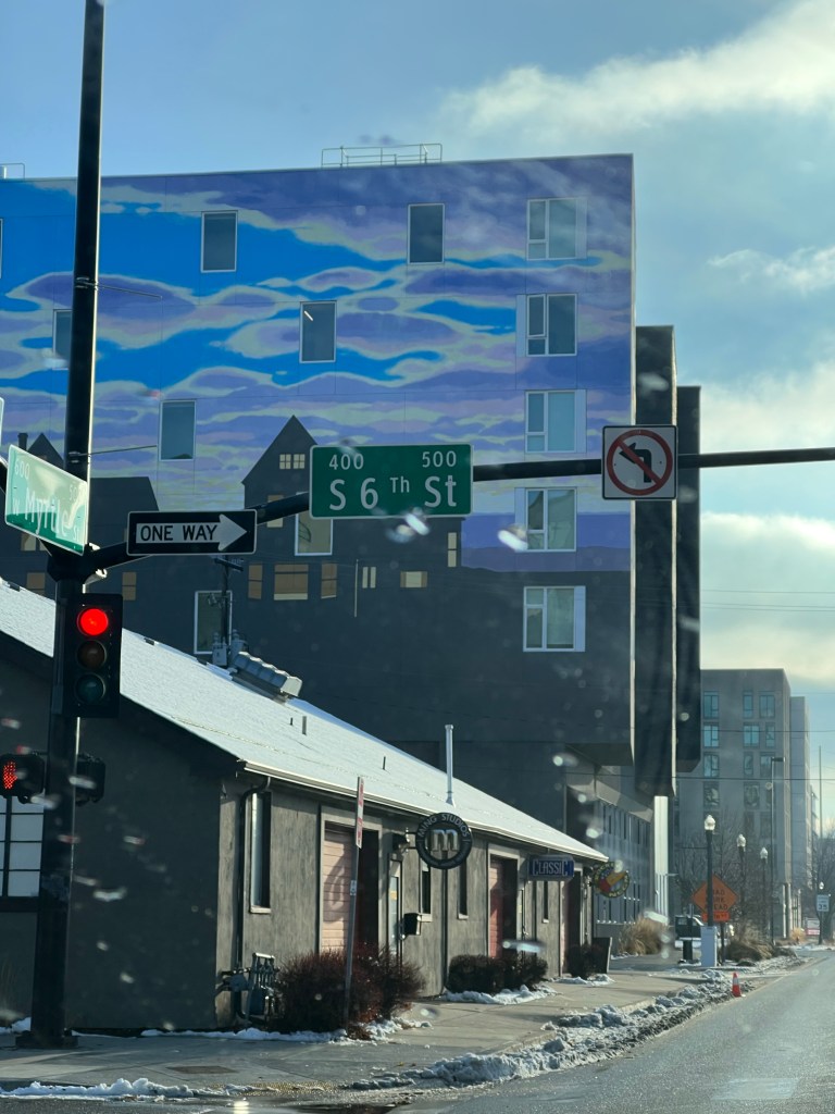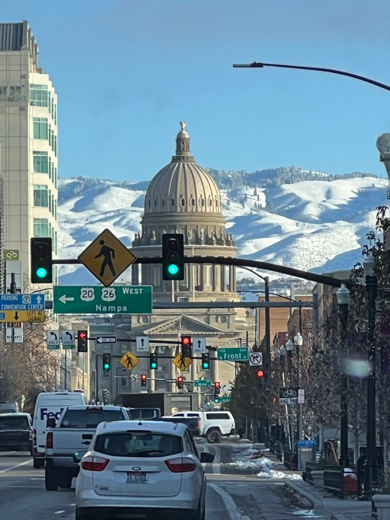 Seguimos con la travesía en Pendleton, donde la neblina del clima nos hizo ponernos un tanto nerviosos y a tener los sentidos mas despierto en la carretera, pasando una valle lleno de nieve y de neblina logramos llegar a IDAHO, exactamente en BOISE ahí nos quedamos dos noches y pude salir a explorar la ciudad, la cual había tenido una nevada reciente.