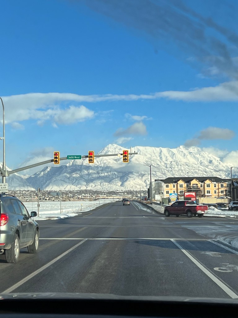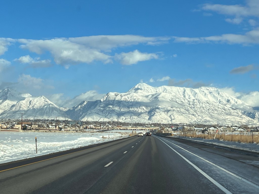 Al dia siguiente salimos con destino a Salt Lake City, donde estábamos rodeados de montañas, nieves, carretera y de repente algunos rayitos de sol, que hacían deslumbrar la nieve.