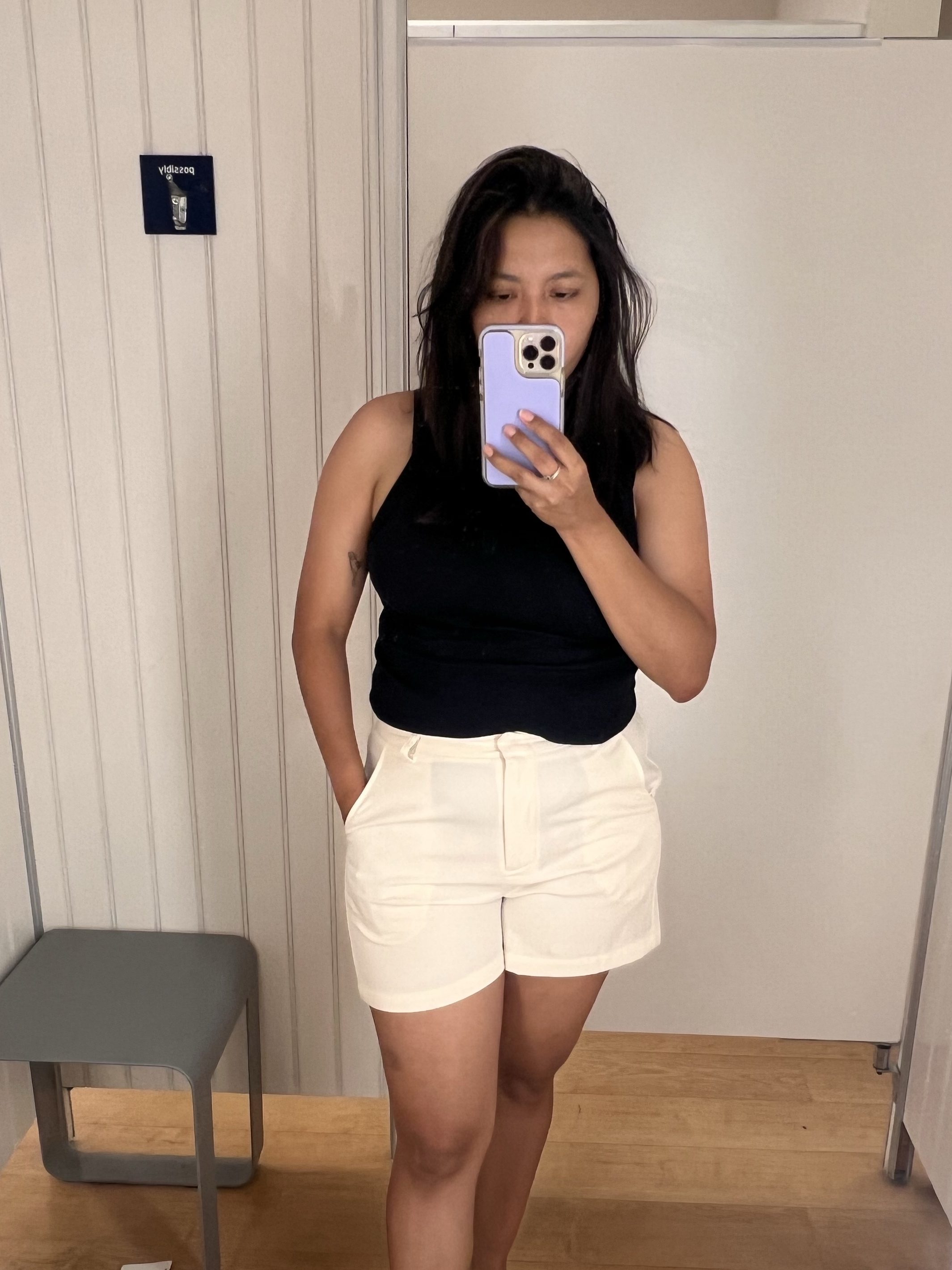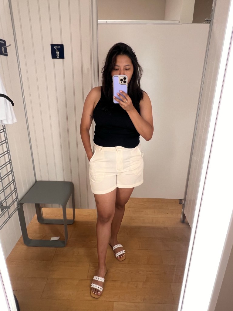 En este caso yo quise hacer un look inspirado en OLD MONEY utilizando prendas básicas como son una top negro y un short en color crema creando un contraste delicado y además agregue una sandalias en color blanco sencillas pero con un toque delicado.Y sumado a ello un maquillaje muy natural.