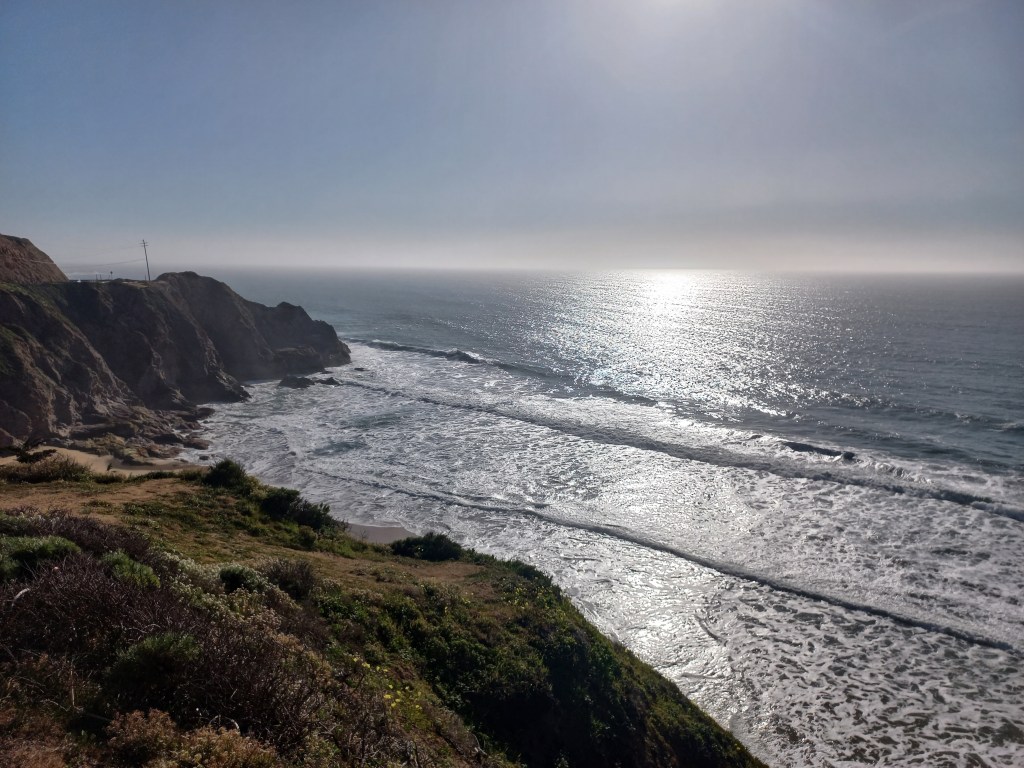 Durante el camino hicimos un par de parada, la primera fue sobre la playa GRAY WHALE COVE STATE BEACH sinceramente ver el mar me lleno de mucha dicha había pasado semanas rodeada de nieve, que eso esta bien y no tiene nada de malo, pero también me gusta el mar y siento que tengo una conexión bonita con el mar.